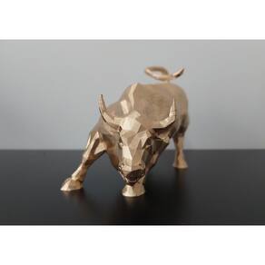 Especificações técnicas: - Touro de Wall Street em design Low Poly geométrico - Altura: 12,5 cm - Material: Plástico ABS - Fabricado em impressão 3D - Acabamento metálico na cor Ouro