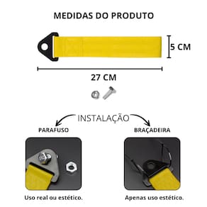 CONTEÚDO DA EMBALAGEM: - 1 Cinta Reboque da marca ESTILO BR; - 1 Parafuso M10 de Aço; - 1 Porca M10.
