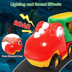 Nicmore 2024 Conjunto de caminhões de dinossauros 5 em 1 versão mais recente Por que escolher este conjunto de brinquedos de dinossauro para meninos e meninas de 2, 3, 4, 5 anos? - Com este caminhão de dinossauro de transporte colorido 5 em 1, os pequenos passarão horas brincando com eles, o que pode melhorar o relacionamento entre pais e filhos ou a amizade entre os bebês. - Feito de ABS 100% atóxico, de alta qualidade, seguro para crianças. A borda lisa mantém sua criança de 2 3 anos brincando com segurança. - Também é um maravilhoso brinquedo sensorial de aprendizagem para educação inicial. Ajuda a melhorar a coordenação olho-mão das crianças, pensamento imaginativo, habilidades motoras finas. Presentes criativos e fofos de Natal, aniversário para crianças. O que nossos filhos podem aprender com estes brinquedos coloridos de construção de desenhos animados enquanto brincam? Brinquedos STEM educativos para crianças Ótima construção cerebral Habilidades motoras finas Promove a coordenação olho-mão A embalagem inclui: - 1 caminhão de transporte grande. - 4 caminhões dinossauro. É uma coisa maravilhosa que as crianças possam desfrutar de muita diversão enquanto aprendem. Basta escolher Nicmore 5 em 1 conjunto de caminhões de dinossauros de desenho animado. - Tamanho perfeito para mãos pequenas de crianças: este conjunto de brinquedos de carros de dinossauro colorido é projetado com tamanho científico, mais adequado para mãos pequenas de crianças de 2 a 5 anos de idade. Brinquedos ideais para meninos de 2 anos. Caminhão dinossauro colorido 5 em 1, incluindo um grande transportador e quatro pequenos carros de dinossauro. Estes carros pequenos têm o tamanho perfeito para as crianças segurarem e empurrarem. Muito prático para carregar aonde quer que você vá. Brinquedos infantis ideais para meninos de 2 a 3 anos de idade. - Brinquedos duráveis e de alta qualidade: este brinquedo de caminhão de dinossauro é feito de plástico ABS seguro de alta qualidade com bordas arredondadas, sem cantos, sem rebarbas, nunca se preocupe em arranhar as mãos ou pisos de madeira do seu filho. Atende aos padrões de brinquedos dos EUA. 100% amigável para crianças. Eles podem sobreviver ao seu quinhão de quedas, quedas e impactos, tornando-os incrivelmente duradouros. Brinquedos de caminhão para meninos e meninas de 2, 3, 4, 5, 6 anos de idade. - Diversão infinita para crianças: há 1 brinquedo de transporte de inércia e 4 brinquedos de carros de dinossauro. Basta empurrar o caminhão de brinquedo grande para frente, ele vai correr para a frente sozinho. Abra a porta traseira para descarregar o mini-veículo. Além disso, puxe o pequeno caminhão dinossauro de volta e solte sua mão, eles correrão para frente sozinhos. A cabine do caminhão e o trailer atrás dela podem ser separados à vontade. Brinquedos fáceis e divertidos para bebês de 18 a 24 meses. - Carro multifuncional para meninos: pressione o botão acima do caminhão grande para reproduzir o som e acender o farol, melhorar a diversão dos jogos das crianças. Os brinquedos de caminhão trarão muita alegria e surpresa para as crianças! Certifique-se de que toda vez que você pressionar o botão, o apito durará apenas cerca de 8 segundos, não se preocupe em fazer barulho. Ótimos brinquedos internos e externos para meninos de 2 anos. Brinquedos felizes e tempo de jogos para meninos de 2 a 4 anos. - Presente incrível para crianças: um presente de aniversário altamente recomendado, ideias de presentes para crianças, decoração de casa, brinquedos de viagem, lembrancinhas de festa, presentes de festival, presentes de Páscoa, presentes de verão, presentes de devolução, brinquedos de presentes de Natal para meninos e meninas de 6 anos de idade. Se você está procurando presentes infantis para seus meninos, meninas, neta, neta, sobrinha, pré-escolar ou jardim de infância. Esta será uma ótima opção de presente.