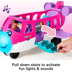 - Pressione o assento do capitão ou abra a porta para ver o nariz do avião se iluminar com frases, sons e músicas divertidas - A porta se abre para revele escadas para embarcar passageiros. Acomoda até 7 amigos Little People para emocionantes aventuras de viagem (bonecos adicionais vendidos separadamente e sujeitos à disponibilidade).