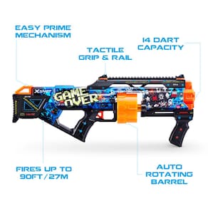 XShot Skins Last Stand — Game Over 16 Darts by ZURU, X-Shot, Slam Fire, Auto Rotating Barrel, Toy Foam Blaster & Guns, Dart Blaster, presentes divertidos para crianças, adolescentes, adultos, embalagem sem frustrações