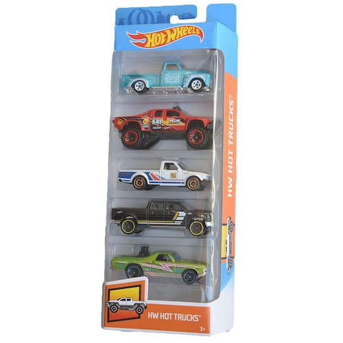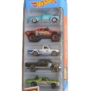 Escala 1:64 - Hot Wheels 2019 HW Hot Trucks apresentam 4x4s e caminhões prontos para trabalhar ou correr - Estilo: 2019 HW Hot Trucks - Este conjunto de rodas quentes inclui um azul petróleo HW Speed Shop 1952 Chevy, um jato de areia 541 M&M vermelho e amarelo, um Datsun 620 branco e azul, preto com detalhes amarelo e branco 2009 Ford F-150, e um verde com rosa e vermelho acentuado 1968 El Camino - Estes carrinhos Hot Wheels em escala 1:64 são compostos de metal fundido com peças de plástico que são ótimos para qualquer tipo de aventura interna ou externa - Este conjunto de carros é uma ótima adição para qualquer coleção de rodas quentes