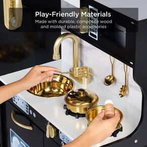 - Cozinha fiel à vida: seu filho pode ter uma experiência verdadeira com recursos divertidos como um toalheiro e máquina de gelo, e sons realistas como o "clique" das maçanetas do forno enquanto fingem assar e cozinhar em uma cozinha com design elegante com um backsplash para um apelo moderno