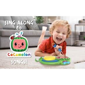 Boombox auxiliar eKids Cocomelon Toy Singalong com microfone para crianças pequenas, música embutida e luzes piscantes, fãs de presentes Cocomelon