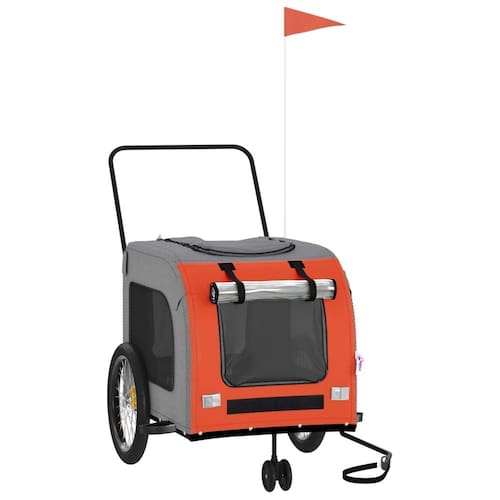 - Cor: laranja e cinza- - Material: tecido Oxford, ferro, PVC- - Dimensões gerais: 26,8" x 52,8" x 28,7" (C x L x A) - - Dimensões da cabine: 21,7" x 31,5" x 21,7" (C x L x A) - - Comprimento da bandeira: 54,7"- - Capacidade máxima de carga: 99,2 lb- - Capacidade de carga da barra de tração: 6,6 libras 24,3 lb- - Montagem necessária: Sim- - Proposta 65 da Califórnia