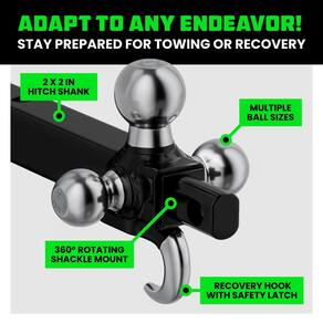 Atualize sua configuração de reboque com o engate Rhino USA Tri-Ball Hitch, com três tamanhos de bola versáteis (4,5 cm, 5 cm e 6,5 cm) e impressionantes capacidades de carga de 2,3 kg, 2,7 kg e 4,5 kg. Feito de aço de alta resistência e resistente às intempéries, este engate garante durabilidade e confiabilidade excepcionais em todas as condições. Inclui um pino de engate de travamento para maior segurança, juntamente com uma manilha giratória de anel D e gancho de reboque resistente para tarefas flexíveis de recuperação e reboque. Com o engate Rhino USA Tri-Ball Hitch, você obtém tudo o que precisa para um desempenho seguro e eficiente na estrada ou em situações desafiadoras de recuperação. - Propriedade americana, operada por família – Junte-se à família Rhino USA e apoie uma empresa de pai/filho com o melhor suporte ao cliente nos EUA. - Engate de reboque tudo-em-um – possui um pino de engate de travamento para manter o engate firmemente no lugar, uma manilha giratória de anel em D para situações de recuperação flexíveis e um gancho de reboque resistente - Opções de reboque versáteis – Possui três bolas de tamanhos diferentes (4,5 cm, 5 e 6 cm) e cargas máximas de 2,3 kg, 2,7 kg e 4,5 kg. - Estrutura de aço sólido – Feito de aço de alta resistência e resistente ao clima para durabilidade excepcional e resistência ao desgaste. Garante desempenho confiável e uso duradouro sob condições exigentes. - Substituição vitalícia real – Todos os produtos Rhino USA vêm com uma substituição vitalícia. Se você encontrar algum problema, garantiremos que você esteja 100% satisfeito com uma substituição ou reembolso.