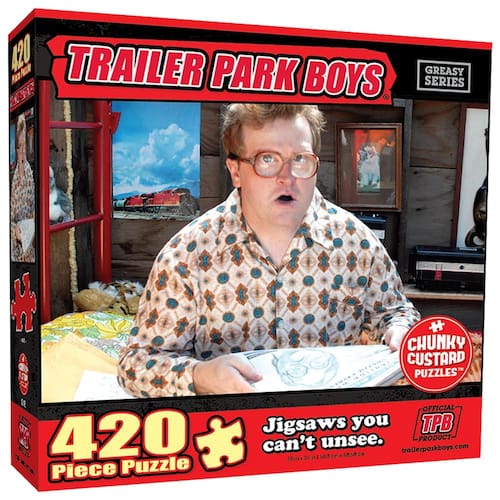 Trailer Park Boys Quebra-cabeça oficial de 420 peças. Jigsaws que você não pode deixar de ver! Série gordurosa! Emocione e desafie sua família e amigos juntando este brinquedo interativo de quebra-cabeça. Traga para casa horas de brincadeiras divertidas e crie boas lembranças!