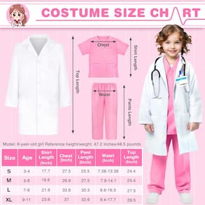 1 - 1 - Presente ideal para crianças de 3 a 12 anos - Esta fantasia médica pode atender às necessidades da maioria das crianças. Oferecemos 4 tamanhos deste jaleco e esfoliante infantil, incluindo pequeno para 3-4 anos, médio para 5-7 anos, grande para 8-9 anos e extra grande para 10-12 anos. E marcamos a faixa de altura e peso adequada para cada tamanho. Escolha o tamanho apropriado, consulte a imagem. Finja que jogar com este verdadeiro kit médico deixará as crianças mais engajadas e felizes o dia todo! - Traje médico para crianças com estetoscópio real - Vem com um estetoscópio real que pode ouvir sons reais de batimentos cardíacos. Ouvir os batimentos cardíacos ou a família não é apenas muito interessante para as crianças, mas também faz com que as crianças aliviem a ansiedade e o medo de ir ao médico. Crie horas de diversão com o kit de fantasias médicas para crianças. - Um kit didático e educacional para médicos infantis - Nossa fantasia de médico infantil certamente inspirará imaginação ao fingir que está brincando. Imagine-os como médicos, enfermeiros ou veterinários tratando outras pessoas ou animais de estimação. Melhora o pensamento criativo e ajuda seu filho a aprender mais sobre médicos, dramatizações e habilidades sociais para fingir ser médico. E as crianças podem se interessar em ser médicas. Talvez ela ou ele sonhassem em ser médicos no futuro. - Diversão infinita para dramatizar — Este jaleco e esfoliante infantis são ótimos para fantasias de Halloween para crianças, meninas e meninos, jogos de RPG, fantasias de dia de carreira para crianças, festas de aniversário ou festas temáticas em hospitais, etc. E o kit médico infantil é um excelente presente para uma criança pequena que gosta de fingir ser médica ou cientista. Ajuda seus filhos a desenvolver hábitos saudáveis. É uma fantasia de Halloween perfeita para meninas, meninos e todas as crianças.
