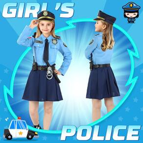 Fantasia feminina de policial para crianças de 3 a 12 anos. Escolha o tamanho apropriado com base no formato do corpo da criança e aguarde a aparência brilhante de seus filhos na festa!