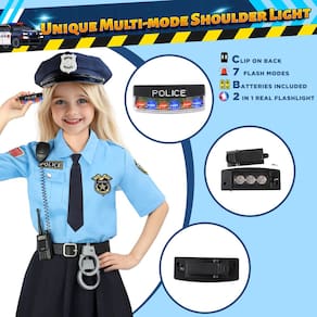 -?Acessórios de vestir de alta qualidade?Atualizamos o design do acessório, incluindo a luz brilhante do braço policial. Os acessórios policiais brilhantes devem ser o cenário mais especial para a atmosfera de Halloween! Os produtos acessórios passaram por uma certificação de segurança rigorosa, são resistentes e duráveis, não têm bordas ou superfícies afiadas e são dimensionados para fantasias policiais para crianças de 3 a 12 anos, o que os torna uma escolha segura para mães.