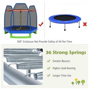 Trampolim DIÁRIO para crianças, trampolins recreativos de 7 pés, trampolim com compartimento de segurança de rede, mini trampolim interno