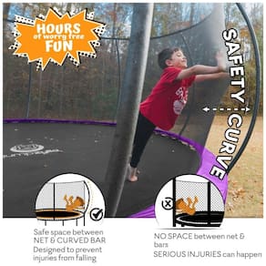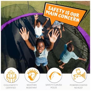 A diversão e segurança do seu filho são nossa responsabilidade! Para garantir a segurança de sua família, inovamos nossos trampolins para crianças e adultos com postes curvados de última geração, projetados para proteger seus filhos de acidentes. Os trampolins Jumpzylla atendem à norma de segurança ASTM F381-16. Nunca comprometemos a segurança nem a qualidade, nossa missão é entregar trampolins resistentes para horas intermináveis de diversão sem preocupações.