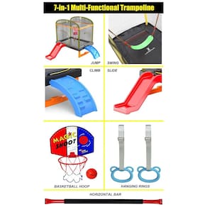 Este trampolim é perfeito para crianças de todas as idades e oferece muito mais do que apenas um trampolim. Ele inclui um escorregador, balanço e degraus para subir, permitindo que as crianças se divirtam escalando, deslizando, balançando e pulando o dia todo. Com capacidade para até 12 crianças brincarem juntas ao mesmo tempo, ele é adequado para bebês e crianças mais velhas. A estrutura robusta de aço evita que o trampolim tombe, enquanto o protetor de almofada de alta qualidade cobre as molas de segurança. A almofada de proteção da mola fica dentro da rede de segurança do trampolim, garantindo uma área de jogo maior e evitando que as mãos e os pés das crianças sejam presos por molas durante as brincadeiras. O design de fivela de deslizamento e escalada de transformação combinatória arbitrária, design de balanço com gancho, instalação e desmontagem são muito rápidos e fáceis. Ele pode ser colocado em um canto graças ao seu design retangular, aproveitando ao máximo o espaço. Este trampolim é feito com materiais anticorrosivos ultravioleta, permitindo que ele seja utilizado tanto em ambientes internos quanto externos. É o presente perfeito para crianças e pode ser facilmente montado com a ajuda do manual de instruções detalhado e dos acessórios completos. Quando a criança vir a expressão de surpresa deste grande brinquedo, você pensará que é um trampolim de excelente qualidade e preço razoável.