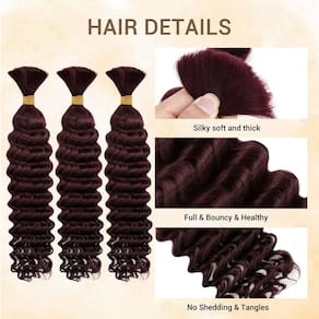 - ?6-8 99J cabelo humano ondulado profundo cabeça inteira?O cabelo humano encaracolado para tranças boho está disponível em feixes de cabelo humano de 14-56 polegadas, molhado e ondulado de 35,5-40,6 cm, 1 pacote é de 40 g, 45,7-50,8 cm 1 pacote é de 50 g, 56 cm 1 pacote é 60 g. O cabelo humano para trançar mulheres negras tem comprimento e peso reais, qualidade garantida. Se você gosta de cabelo humano de cabeça inteira para tranças boho de 40,6 cm, recomendamos que você compre de 6 a 8 mechas de cabelo humano trançado de ondas profundas para tranças boho sem nós.