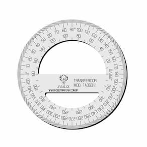 Características: - medidas em graus º - fabricado em acrilico 3mm - cor cristal transparente. - alta resistencia. - possui gravação das escalas em baixo relevo. - tamanho escala: -medidas: 12 x 12 cm