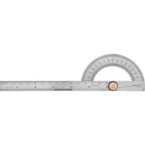 Material do transferidor de ângulos: Aço polido Comprimento da lâmina do transferidor de ângulos: 150,0 mm Capacidade do transferidor de ângulos: 0 à 180 Graduação do transferidor de ângulos: 1