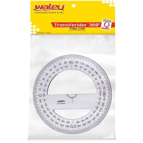Transferidor Poliestireno 360 Graus Cristal O Transferidor 360º New Lina Waleu, é resistente, feito em poliestireno. Seu uso é diversificado podendo ser nas mais diversas áreas, como educação, matemática, engenharia, e muitas outras atividades que requeiram o uso e a medição de ângulos com precisão. Medidas aproximadas do produto - Comprimento: 16 cm - Altura: 3 cm - Largura: 13 cm - Peso: 220 g Marca: Não Informado