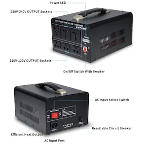 O transformador conversor de voltagem LVYUAN 3000W LY-VT-3000VA executa conversão step up de 110-120V para 220-240V e step down de 220-240V para 110-120V, suportando carga máxima de 3000W. Oferece saídas simultâneas com 3 tomadas US para 110-120V e 3 tomadas universais para 220-240V, além de cabo de alimentação destacável para adaptação a padrões internacionais. Design com carcaça metálica preta, resfriamento passivo sem ventilador, operação silenciosa e sem emissões de odor, utilizando componentes ambientalmente corretos.