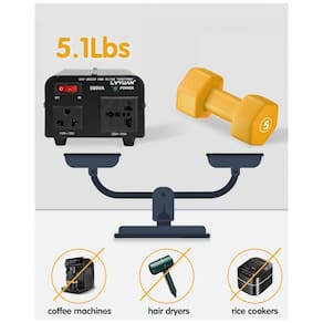 O transformador conversor de voltagem LVYUAN 500W VTUS-500 realiza conversão step up de 110-120V para 220-240V e step down de 220-240V para 110-120V, com capacidade máxima de 500W. Oferece saídas simultâneas com tomada US para 110-120V e tomada universal para 220-240V, compatível com aparelhos de baixa potência como carregadores e roteadores. Construção com carcaça metálica preta, componentes ambientalmente corretos, operação sem odor ou ruído e resfriamento passivo.
