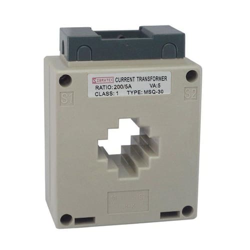 Transformador de Corrente TC Linha MSQ30 Relação de 200/5A Classe 1% - Furo para o cabo de 31mm TC classe 1% 62mm_ MSQ100- 1200/5A Os transformadores de corrente MSQ tipo janela retangular SIBRATEC são fabricados de acordo com as normas internacionais IEC185-1987, VDE0414 e BS7626, podendo ser utilizados em procedimentos de testes, controle, visualização da corrente consumida por dispositivos elétricos, proteção contra sobrecorrentes e demais aplicações onde é necessária amostra da corrente. Um transformador de corrente ou simplesmente TC é um dispositivo que reproduz no seu circuito secundário, uma amostra da corrente que circula no enrolamento primário. Esta corrente tem proporções definidas e conhecidas, sem alterar sua posição vetorial. As relações mais utilizadas no mercado são de XXX/5A e XXX/1A, ou seja, a corrente do primário é amostrada e tem como saída no secundário 5A ou 1A. Por exemplo: 1000/5A - Uma corrente no primário de 0 a 1000A é amostrada e no secundário teremos 0 a 5A. Esta aplicação é largamente utilizada em circuitos de medição, onde seria economicamente inviável medir utilizando equipamentos para altas correntes. Marca: Não Informado Ean: 7898623745292