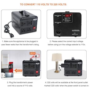 O VTF 1500 é avaliado em 1500 watts no máximo. O transformador pode alternar entrada de 110V ou entrada de 220V e conversores de 110V para 220V ou 220V para 110V, que é em vários aparelhos elétricos domésticos e estrangeiros. Por favor, mude para a voltagem correta antes de conectar 110V nos EUA.