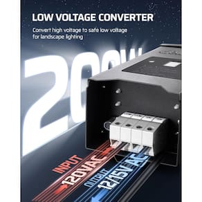 DEWENWILS Transformador de iluminação paisagística de baixa tensão para ambientes externos ilumine seus espaços ao ar livre com o transformador de iluminação paisagística DEWENWILS de baixa tensão, projetado para converter energia CA padrão de 120 V em uma baixa tensão segura de 12/15 V para todas as suas necessidades de iluminação paisagística. Este transformador robusto é projetado para oferecer desempenho confiável e inclui uma variedade de recursos para melhorar sua experiência de iluminação externa. Melhore o ambiente e a segurança do seu ambiente externo com o transformador de iluminação paisagística DEWENWILS Outdoor de baixa tensão. Ideal para caminhos de jardim, calçadas e outros espaços ao ar livre, este transformador oferece funcionalidade e durabilidade, tornando-o a escolha perfeita para suas necessidades de iluminação paisagística. Especificações: Tensão de entrada: 120 VCA, 60 Hz - Saída: 12/15 VCA - Classificação máxima de energia: 150 VA - [Saída e aplicação seguras de 12/15 V] Este transformador de iluminação de baixa tensão pode produzir uma tensão segura de 12/15 V CA, é uma escolha ideal para iluminação paisagística, oferecendo energia confiável para luzes de jardim, luzes de caminho e outras luminárias decorativas externas - [Fácil de operar e instalar] Use os botões "??" para definir o dispositivo para o modo "Always On", "Auto" ou "Countdown/Off", tornando-o conveniente para uso diário e economia de energia; com furos embutidos, nosso transformador de luz de piscina é fácil de montar diretamente na parede - [Sensor de fotocélula e temporizador] Com sensor do crepúsculo ao amanhecer, nosso transformador de baixa tensão multitoque liga automaticamente as luzes ao anoitecer e desliga ao amanhecer; o temporizador permite uma configuração de contagem regressiva que varia de 1 a 9 horas, liga automaticamente ao anoitecer e desligar após 1, 2, 3, 4, 5, 6, 7, 8, 10 horas - [Função de memória e proteção contra curto-circuito] Função de memória, o transformador de paisagem de 4 canais permanece o modo de temporizador que você selecionou antes, mesmo após falta de energia; proteção conveniente e segura contra curto-circuito oferece reinicialização automática após ocorrer uma falha - [Caixa revestida de metal e à prova d'água] O transformador de baixa tensão DEWENWILS para luzes de paisagem é projetado com revestimento de metal resistente, oferece proteção contra os elementos e permanece à prova d'água e resiste efetivamente à corrosão ao longo do tempo