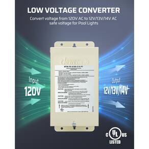 Como escolher o seu transformador 1. Calcule a potência total de suas luminárias em seu plano 2. Escolha o transformador que é grande o suficiente para suportar a potência total que você precisa. 3. A carga de potência do transformador (watts totais necessários para seus acessórios) deve estar dentro de 80% da capacidade nominal do transformador. Por exemplo: se você tiver 5 pacotes de luzes de paisagem de 13 W, a potência total é de 65 W. Então você pode escolher o transformador maior que 81W (= 65W/0,8). 120V CA para 12V/13V/14V CA Você pode escolher saídas de terminal de 12V/13V/14V de acordo com o comprimento e o calibre do fio do seu cabo, certifique-se de que a potência total das luzes de paisagem não exceda 80 W (100 Lx0,8) Especificações: Entrada: 120 VCA, 60 Hz Saída: 12V/13V/14V AC Classificação de potência máxima: 100 W Certificação UL Conteúdo da embalagem: 1 x transformador. 1 x manual de instruções (idioma português não garantido). 2 suportes de montagem. 4 tampas de terminais. Dicas: O transformador tem 3 saídas com uma potência total de 100W. Você pode escolher qualquer um deles para conectar ao seu cabo. - ?120 V CA para 12 V/13 V/14 V AC? 100 W, converte a tensão doméstica de 120 V CA em tensão de segurança de 12 V/13 V/14 V, proporcionando um nível de corrente elétrica mais seguro e prático. O design de saída multitoque permite adicionar/subtrair novos circuitos para conectar com as luzes da sua piscina e luzes de paisagem de baixa tensão ao redor. - ?Fácil de instalar? 10 nocautes (f1,06") estão disponíveis para você enfiar seu fio. Compartimento de alta tensão e compartimento de baixa tensão são convenientes para armazenar os fios corrigidos. 2 suportes de montagem separam o transformador da parede, alcançando efeito de dissipação de calor. - ?Durável e seguro?Estrutura de metal sólido, design de escudo selado, protege o transformador contra todas as condições climáticas severas. Certificado UL, este transformador de segurança é especialmente projetado para operar iluminação de baixa tensão, adequado para conexão direta a luzes subaquáticas de piscina/spa. - ?Amplamente utilizado? Aprovado para instalações internas e externas. Você pode instalá-lo em sua garagem para operar as luzes ou usá-lo para conectar luzes de piscina, luzes de fonte, longarina, luminárias submersíveis, paisagem externa e iluminação decorativa, etc. - [Disjuntor automático] O disjuntor automático integrado garante proteção eficiente contra sobrecargas e curtos-circuitos; Observação: a potência combinada da iluminação externa deve permanecer dentro de 80% da capacidade da bateria