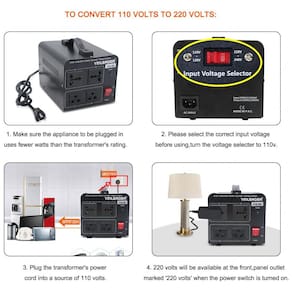 Transformador de tensão 220 V a 110 V, 110 V a 220 V Oferecemos a você uma solução fácil, segura, confiável, estável e econômica para converter tensões. Aumente 110 V 120 V a 220 V 240 V ou reduza 220 V 240 V a 110 V 120 V O interruptor está na parte traseira da unidade Multifunção O Transformador Conversor de Tensão pode ser com qualquer tipo de aparelho ou dispositivo de até 600 watts, como CPAP, Escova de dentes elétrica, Alisador de cabelo, Laptop, Celulares, Curling Irons, Aquecimento, Televisão, Xbox, etc. 7x24hrs Contínuo Executar transformador toroidal de alta eficiência com saída estável e baixo consumo. Ele passou no teste de aumento de temperatura e no relatório de teste IEC. Tomadas múltiplas 4 saídas CA, 2 tomadas padrão dos EUA para aparelhos de 110 120 V 2 tomadas universais aceitam todos os tipos de plugues, exceto o plugue sul africano grande para aparelhos de 220 240 V. O transformador pode ser em países cuja voltagem é 90 V 125 V ou 180 V 250 V como EUA, EUR, Reino Unido, JP e muito mais. Disjuntores duplos protetores para cada voltagem que é uma operação segura.