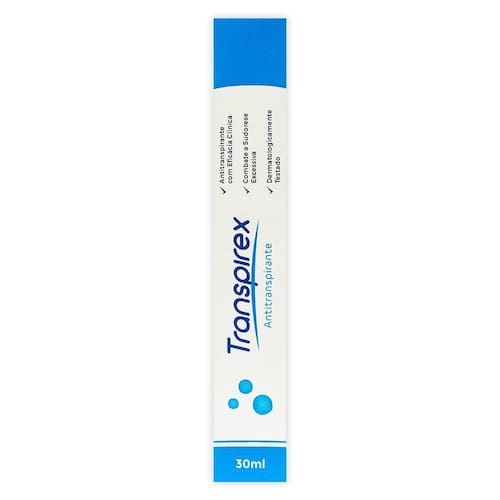 Transpirex é um forte antiperspirante contendo o ingrediente ativo Cloreto de alumínio, sua fórmula, seu método de fabricação e o seu mecanismo único de absorção propiciaram todo o reconhecimento e sucesso. É o antiperspirante de tratamento para hiperidrose brasileiro mais vendido em todo o mundo! Desodorantes normais podem ainda ser usados juntos com o Transpirex, pois não é um desodorante e não contém perfume. Transpirex funciona da mesma forma que a maioria dos anti-transpirantes regulares, bloqueando os poros da pele. É apenas uma versão mais eficaz e segura.