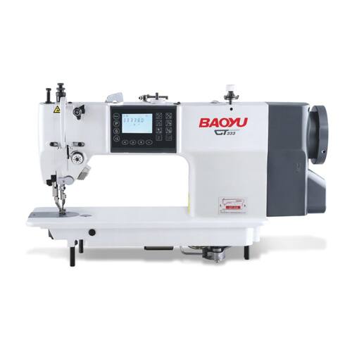 Baoyu GT-333-D4 é uma máquina de costura industrial ininterrupta especialmente projetada para processar couro e materiais pesados. Este modelo de máquina de costura é utilizado para confecção de diversos produtos como equipamentos táticos, bolsas, carteiras, lonas, showrooms de automóveis e bordas de tapetes de EVA. Sistema de agulha – DPx35/134x35. A velocidade de funcionamento ajustável permite adaptá-lo a diferentes tarefas, com velocidade mínima de 300 rpm e máxima de 2500 rpm. Características do Baoyu GT-333-D4: Transporte duplo de material