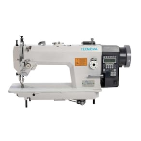 Máquina de costura transporte duplo eletrônica com lubrificação automática e corte de linha. Ideal para couro, estofados, lonas e tecidos grossos. Possui sistema eletrônico com ajustes digitais de velocidade e pontos, motor moderno silencioso, econômico e projetado para uso contínuo. Acompanha mesa e acessórios.Funções