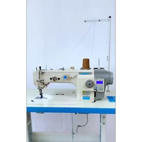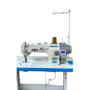 SM-5400-D4 Maquina de costura reta 1 Agulha ponto fixo, com Motor Direct-Drive Eletrônico embutido no cabeçote, posicionador de Agulha, Controle de Velocidade, luz de LED embutida, sistema de estica fio e lançadeira rotativa, Corte de Fio automático, levantador de calcador automático, arremate inicial e final, caça-fio eletromagnético, para Material PESADO, TRANSPORTE DUPLO Superior e Inferior, comprimento do ponto 8mm, Altura do Calcador 8-16mm. Velocidade 2000 RPM, Versão 220V.