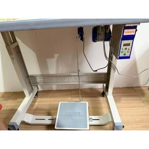Máquina de costura industrial reta com transporte duplo, sistema automático de lubrificação, levantamento do calcador por alavanca e joelheira. Ideal para costuras sobrepostas em materiais como couro e bolsas. Inclui mesa, motor servo silencioso e bivolt.Funções