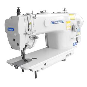 LM-0718T-D4-ALL Reta Eletrônica, 01 agulha, transporte triplo (dente, agulha e calcador) motor Direct Drive, lançadeira grande e lubrificação automática. Possui painel embutido, levantamento de calcador e corte de linha automático, costura e retrocesso programável e ponto de 8mm. Posicionador de agulha em cima e/ou embaixo, led de iluminação e controle digital de velocidade. Voltagem 220V e 60Hz. Indicada para materiais como; couro natural ou sintético, lona e PVC. Reta Eletrônica, 01 agulha, transporte triplo (dente, agulha e calcador) motor Direct Drive, lançadeira grande e lubrificação automática. Possui painel embutido, levantamento de calcador e corte de linha automático, costura e retrocesso programável e ponto de 8mm. Posicionador de agulha em cima e/ou embaixo, led de iluminação e controle digital de velocidade. Voltagem 220V e 60Hz. Indicada para materiais como; couro natural ou sintético, lona e PVC. Pode ser usada na confecção de calçados, jaquetas, estofados entre outros materiais. Vantagens: – Baixo nível de ruído e vibração – Função ponto-a-ponto (dispensa o manuseio do volante) – Economia de energia – Alívio de fadiga do operador - Envio feito via transportadora ( 2 caixas, maquina+mesa) Montagem por conta do Comprador