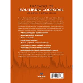 Os 25 capítulos que compõem cada uma das quatro seções do livro observaram os seguintes parâmetros: tema, importância, objetivo, evidências científicas e aplicações clínicas. Por se tratar de uma obra de caráter prático, mas baseada em evidências, os Editores uniram, na escrita de cada capítulo, a visão do profissional com renomada atuação clínica e/ou hospitalar à visão de pesquisadores consagrados na área acadêmica e/ou de jovens pesquisadores. Dessa maneira, foi possível contar com pesquisadores, professores e clínicos dedicados a produzir um material destinado aos médicos, aos fonoaudiólogos e aos profissionais que em seus respectivos campos de trabalho atuam na área do equilíbrio corporal humano.