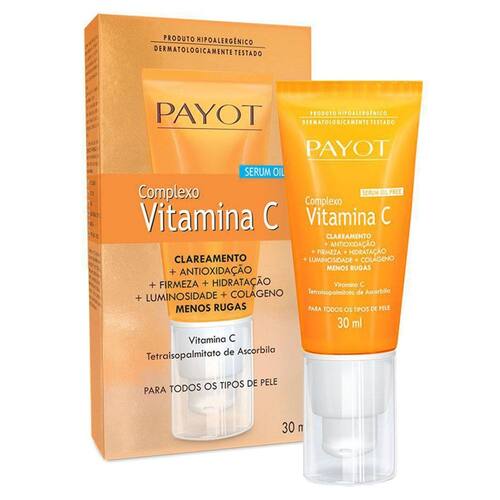Sobre O Produto O Complexo de Vitamina C é um sérum clareador, antioxidante, que estimula o colágeno, tornando a pele mais luminosa, lisa e hidratada. Foi desenvolvido na forma de um sérum lipossolúvel, por ser mais receptivo e absorvido pela pele. É um produto de qualidade, que realmente funciona, porque seu ativo possui maior estabilidade na formulação, oferecendo consequentemente, maior eficácia ao produto. O ativo utilizado no produto tem qualidade excepcional, é o Tetraisopalmitato de Ascorbila, uma forma estável da Vitamina C. O Tetraisopalmitato de Ascorbila, por penetrar quase em sua totalidade, não pode ser utilizado em grandes concentrações, sendo que o efeito na pele já é conseguido com porcentagens menores e ideais do ativo dentro do produto. A Payot utiliza 2% de Tetraisopalmitato de Ascorbila, concentração suficiente e segura para atribuir todos os benefícios comprovados por teste: 71% de efeito clareador81% de elasticidade86% de firmeza90% de redução de rugas de expressão100% hidratação100% luminosidade e vitalidade Todos estes resultados são gradativos e capazes de ser observados em poucos dias de uso. Registro ANVISA nº 2004010750014 Marca: Não Informado