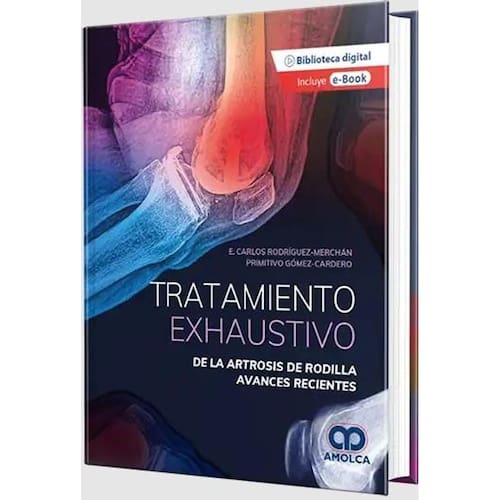 Tratamiento exhaustivo de la artrosis de rodilla: avances recientes, es una obra editada por los doctores E. Carlos Rodríguez-Merchán y Primitivo Gómez-Cardero, médicos ortopedistas del Hospital Universitario La Paz, en Madrid, y en ella reúnen la experiencia de colegas que examinan de manera integral todo lo relacionado con los tratamientos de la rodilla con artrosis. Con la ayuda de más de 100 imágenes, el libro se destaca porque aborda cuáles son los medicamentos orales y tópicos para el tratamiento, la rehabilitación física del paciente, el tratamiento con ácido hialurónico, plasma rico en plaquetas y gas ozono. Asimismo, la obra está complementada con capítulos que se centran en la artrosis patelofemoral, la artrodistiasis, artrosis de rodilla unicompartimental y tricompartimental, rodilla infectada, así como la revisión de artoplastia de rodilla y el abordaje de complicaciones posoperatorias. Esta obra se convierte en un recurso único para ortopedistas y traumatólogos que deseen ampliar su conocimiento sobre la artrosis de rodilla, pero también puede servir para fisioterapeutas que requieran una exposición más completa sobre los posibles tratamientos que puedan manejarse en paciente con este trastorno. Marca: AMOLCA INTERNATIONAL INC