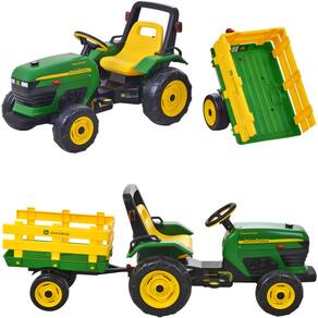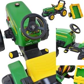 O Trator Pedal Infantil John Deere Tractor & Trailer da Peg Perego está disponível em modelo único nas cores tradicionais da John Deere... verde e amarelo.