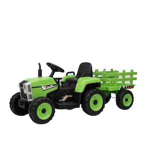 Réplica realista de trator agrícola * Carretinha traseira removível, super espaçosa Assento confortável Cinto de segurança regulável * Apoios de braço articulados Faróis de LED que acendem de verdade Sons de buzina, ronco de motor e músicas integradas Entrada USB