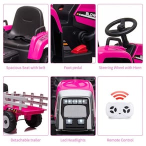 Controle Paternal Manual: os pais podem controlar o trator para desfrutar de momentos felizes com a criança. Além disso, a criança também pode operar o veículo sozinha, usando o pedal e sistema de 3 marchas para controlar a velocidade ideal. Garantia de Segurança: este trator infantil é certificado pelos padrões de segurança ASTM F963 CPSIA CPC, com função de partida lenta, controle remoto dos pais, cinto de segurança ajustável, garantindo a prevenção de quedas. Versão Aprimorada: equipado com pneus EVA de 35W, que são mais potentes e silenciosos, proporcionando uma condução suave em diversas superfícies, ideal para brincar tanto dentro como fora de casa. Diversão Incorporada: este veículo já vem montado, com som de motor realista, buzina, música, entrada para MP3, porta USB, indicador de bateria, função Bluetooth, garantindo mais diversão para a criança enquanto dirige. Design Realista de Trator: possui 7 faróis de LED brilhantes, pedal de controle, câmbio realista de 2 marchas, apoio de braço sólido, reboque destacável, bateria recarregável com 2 motores de 12V. Dimensões Totais: 137cm de comprimento x 51cm de largura x 53cm de altura. Suporta até 30kg. Tempo de Recarga: 8 a 12 horas.