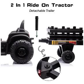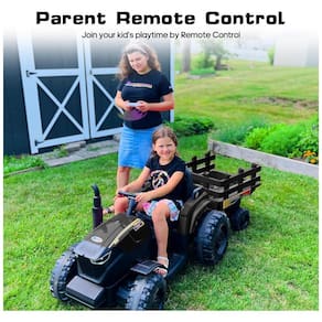 O passeio para crianças grandes Hikiddo em um trator é alimentado por uma bateria recarregável de 24V9Ah, que garante cerca de 1,5 hora de reprodução depois de totalmente carregada. Com dois motores de 200 W, pode atingir velocidades entre 3 km/h a 8 km/h, tornando-o capaz de transportar crianças e um grande trailer com facilidade. O passeio Hikiddo no trator oferece opções de controle manual e parental. As crianças podem usar o pedal para controlar o trator, alternar entre velocidades altas e baixas e avançar para trás. Os pais também podem usar o controle remoto 2.4G incluído para brincadeiras fáceis e interativas com seus filhos. Este carro de passeio vem com um trailer grande que as crianças podem usar para carregar brinquedos, ervas daninhas, flores e muito mais. Equipado com um sistema de suspensão de mola forte e atualizado, ele pode lidar com terrenos complexos e suportar cargas máximas de até 39,91 quilos. Este brinquedo de passeio de 24 V é certificado pela ASTM F963 CPSIA e projetado com tecnologia de partida suave. Possui assento de 14 larguras com cinto de segurança e apoios de braços, proporcionando maior proteção ao seu filho. Além disso, com faróis brilhantes e um leitor de música, as crianças irão desfrutar de uma experiência de condução realista.