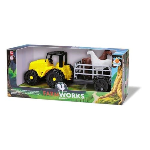 Trator Farm Work Boiadeiro - Vem com animais!O trator para carregar os animais. Ele vem todo em plástico, as crianças irão se divertir muito brincando carregando os animais na carroceria do trator.Especificações: Recomendando à partir de 03 anos Medida: 29cm Material/Composição: Plástico Marca: Orange ToysContém: 01 Trator 01 Reboque 02 Animais (Podendo varias entre cavalo e boi, marrom e branco).Certificado de Segurança: INMETRO