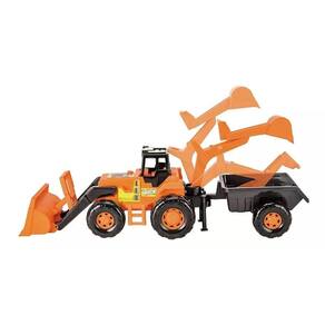 Este Trator é super é demais, com base giratoria móvel 360º, da pra brincar muito pois ele tem 3 posições de braço, pá escavadeira, retroescavadeira e Caçamba movel