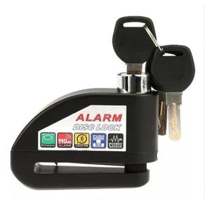 Trava Antifurto Cadeado P/ Moto C/ Alarme Sonoro Freio Disco Trava Disco C/ Alarme Cadeado Antifurto Freio Moto Universal Sua trava funciona com um pino de segurança de aço de 6 milímetros que se encaixa no disco da moto. Quando o sensor detecta movimento o alarme é acionado e soará de 10 a 15 segundos antes de voltar para o modo silencioso caso não haja mais movimento detectado. O disparo se repetirá toda vez que o sensor de movimento for ativado. A trava possui corpo de aço e sua chave é codificada e a mesma serve para acionar e desligar o alarme.