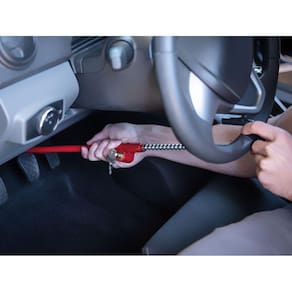 Trava Antifurto para Volante Tramontina com Chave Para a maior segurança de seu veículo, a Tramontina lança a Trava Antifurto para Volante Tramontina com Chave Produzido em aço carbono com revestimento emborrachado, protege o volante e pedal do seu automóvel com muito mais e segurança. Ajustável, ele se adapta a diferentes modelos de carros. Para sua tranquilidade, acompanha duas chaves. Regulagem máxima de comprimento: 725 mm Regulagem mínima de comprimento: 510 mm : 90 dias de legal para vícios ou defeitos de fabricação.