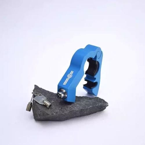 A Trava de manopla TeckLock foi desenvolvida com o propósito de bloquear o acelerador e manter a moto frenada, As travas são acompanhadas por quatro calços de regulagemque permitem o motociclista escolher qual se adapta melhor a sua manopla.Feita com alumínio naval com têmpera T6 e componentes em aço, seu acabamento é realizadoatravés de um banho eletrolítico aonde é inserido um filme óxido na superfície do alumíniopermitindo alta durabilidade no acabamento.