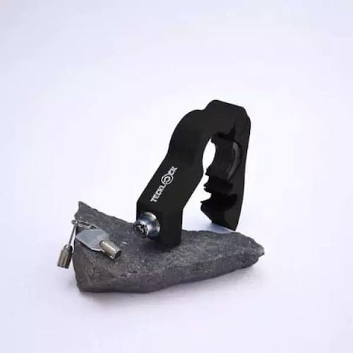 A Trava de manopla TeckLock foi desenvolvida com o propósito de bloquear o acelerador e manter a moto frenada, As travas são acompanhadas por quatro calços de regulagemque permitem o motociclista escolher qual se adapta melhor a sua manopla.Feita com alumínio naval com têmpera T6 e componentes em aço, seu acabamento é realizadoatravés de um banho eletrolítico aonde é inserido um filme óxido na superfície do alumíniopermitindo alta durabilidade no acabamento.
