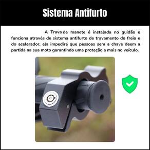 Este produto é uma trava anti roubo ajustável para guidão, adequada para uma variedade de veículos.
