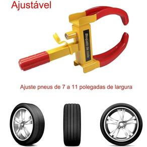 Características: 1. A braçadeira com revestimento macio não risca ou danifica as rodas ou aros e as braçadeiras apertadas na roda para maior segurança. 2. Fácil de armazenar, leve, versátil, configuração muito simples e conveniente. 3. Altamente visível devido às cores brilhantes. 4. Pode ser ajustado para caber em pneus de 7 a 11 polegadas de largura pneu com menos de 28cm . 5. Esta braçadeira de bloqueio resistente é um dispositivo anti-roubo perfeito que irá imobilizar completamente uma roda de girar.