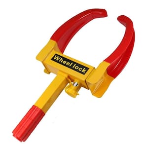 Especificação: Cor: Vermelho e Amarelo Material da braçadeira da roda: Aço temperado resistente Material da peça de revestimento vermelho macio: PVC Furos ajustáveis: 9 Trava Ajustável para rodas de 7 pol. A 11 pol. pneu com menos de 28cm .